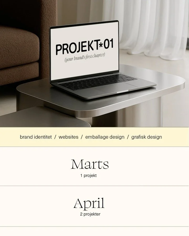 Projekt 01 er et one-woman-studio, hvor strategi og design mødes for at skabe brands med personlighed.